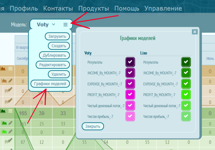 У проекта может быть несколько моделей, например для сравнения стратегий с разными исходными данными, для анализа минимальных и максимальных финансовых результатов.