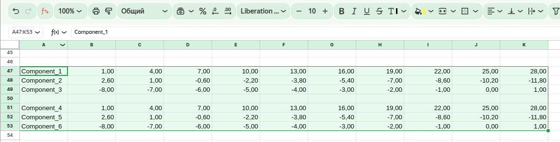 В строку значений компонента возможен ручной ввод данных или по формуле.