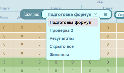 Группу можно заблокировать, в этом случае значения группы по месяцам расчитываются и записываюьтся в её строку, но эти данные игнорируются в других расчётах.